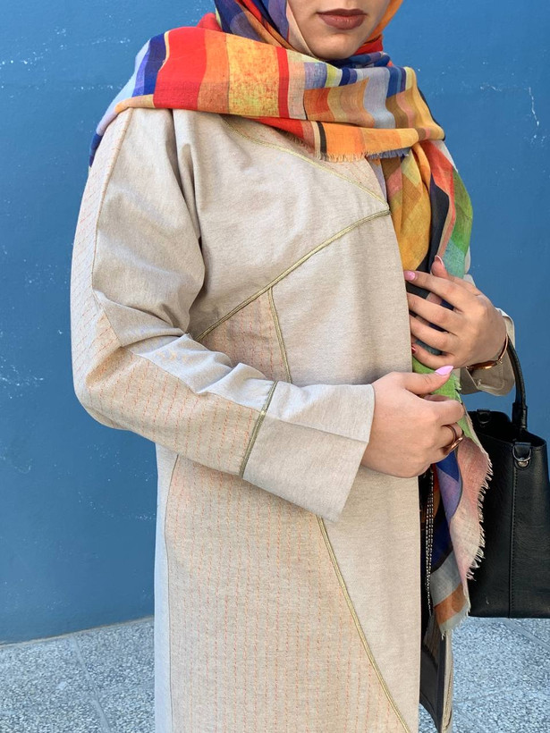 اتمام موجودی بهارطرح جنس لینن درجه یک دارای نوار دوزی های طلایی پارچه در دورنگ توسی و کرم راه راه با خطوط قرمز و زرد است ، که میتوان برای ست کردن از این رنگها کمک گرفت. آستین کیمونو قد:۸۵ سایز:فری( ۳۸_ یه کار شیک برای استایل های خیابانی تون در سال جدید ارسال ۱۰تا۱۵روزبه تمام نقاط